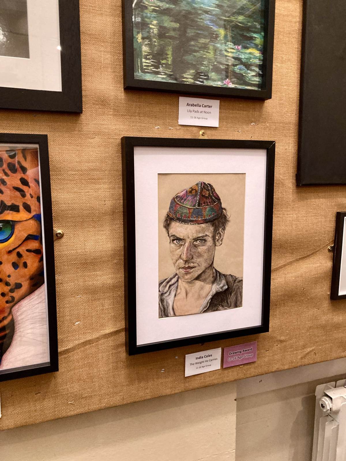 India’s work explores the experiences of refugees, often facing unimaginable uncertainty and hardship. The judges particularly praised the eyes in her portrait, noting how they immediately draw the viewer in and communicate profound emotion. Remarkably, this marks the third consecutive year that a St Simon Stock student has won Best Drawing.
